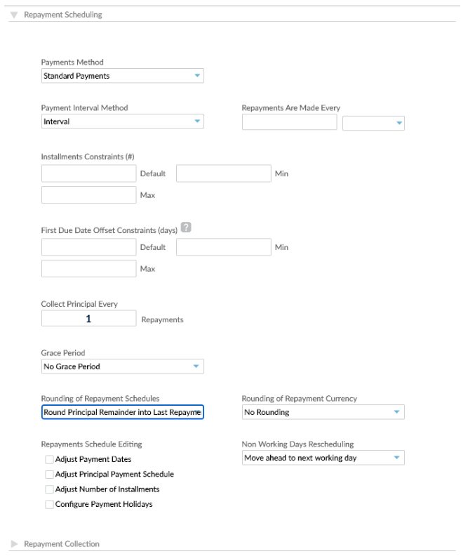 In the Repayment Scheduling section, ensure that the Payments Method is set to Standard Payments.